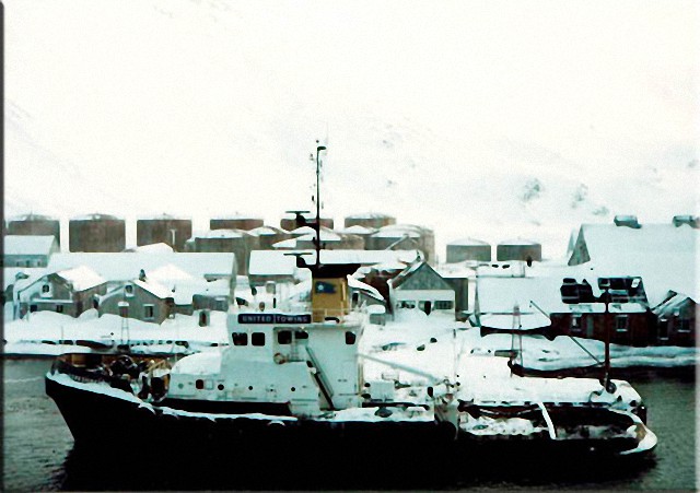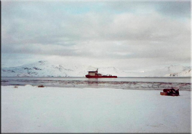 Stenna Inspector in Cumberland Bay, South Georgia. The ship was later purchased by the Ministry of Defence, renamed RFA Diligence, and became a submarine support vessel.