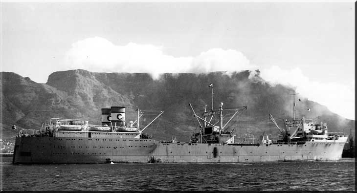 The Factory Ship Rosshavet in Cape Town for bunkers and stores on her way home to Norway after the 1947-1948 season. She was registered in Sandefjord and powered by two 7 cylinder, supercharged B & W main engines, producing 7,500 shaft horse power each. Rosshavet was later to be converted into a drill ship.