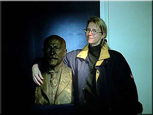 The Whaling Museum, Sandefjord, and Ann-Christin with the bust of Captain Carl Anton Larsen. (1860-1924)