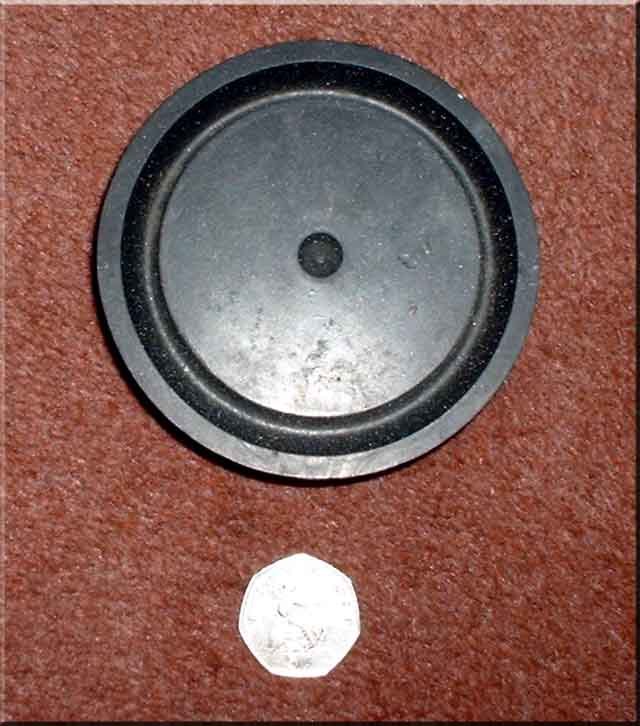This is the rubber plug which was rammed down the barrel of a muzzle loading harpoon gun after it had been charged. The tightly fitting plug kept the sea water from dampening the charge.