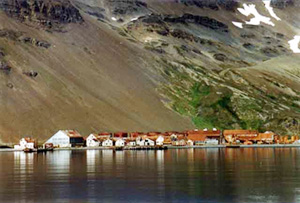 We start at King Edward Point and Grytviken. All arrivals in South Georgia must undergo Customs and immigration checks here. Passport stamps are also available. There was a small garrison at King Edward Point, now gone, and the only people who are permanent residents on the Island are the staff who run and maintain the Whaling Museum in Grytviken. The oldest of the whaling stations, Grytviken was founded in November 1904 by Captain Carl Anton Larsen. (pictured left) The old Manager's house at Grytviken was refurbished and now houses the museum. The whaling stations had their own power generating plant, but Grytviken also boasted water driven turbines fed from the lake above, as well as diesel driven sets. Grytviken officially closed in December 1964.